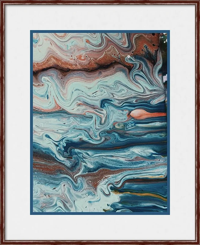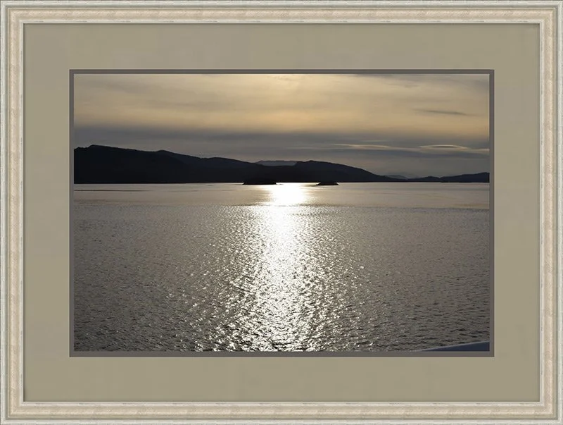 Neutral colors drawn from the artwork itself (rather than your walls) allow the art to shine while still harmonizing with your décor. By choosing a mat just a shade darker than the light on the water, we keep the focus where it belongs — on the tranquil scene. The frame continues the soft, neutral vibe, creating a calm, inviting feel that draws you into the view.